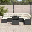 vidaXL Vrtna sedežna garnitura z blazino 9 pcs Črna Poly ratan