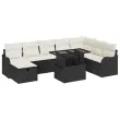 vidaXL Vrtna sedežna garnitura z blazino 9 pcs Črna Poly ratan