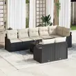 vidaXL Vrtna sedežna garnitura z blazino 9 pcs Črna in bela Poly ratan