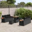vidaXL Vrtna sedežna garnitura z blazino 9 pcs Črna 90 x 55 x 71 cm