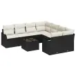vidaXL Vrtna sedežna garnitura z blazino 9 pcs Črna poli ratan
