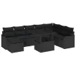 vidaXL Vrtna sedežna garnitura z blazino 9 pcs Črna Poly ratan