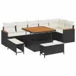 vidaXL Vrtna sedežna garnitura z blazino 9 pcs Črna Poly ratan