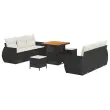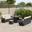 vidaXL Vrtna sedežna garnitura z blazino 9 pcs Črna in krem poli ratan