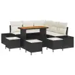 vidaXL Vrtna sedežna garnitura z blazino 9 pcs Črna poli ratan
