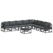 Ta sofistikiran set vrtnih kavčev enostavno združuje moden dizajn s praktičnostjo za zunanje prostore. Oblikovan je tako, da dopolni eleganten videz sodobnih vrtov, s svojo črno silhueto, ki je obrobljena z antracitnimi blazinami. Osredotočen je na uživanje spomladi in poleti ter nudi udoben prostor za druženje in sproščanje na terasah ali vrtovih.