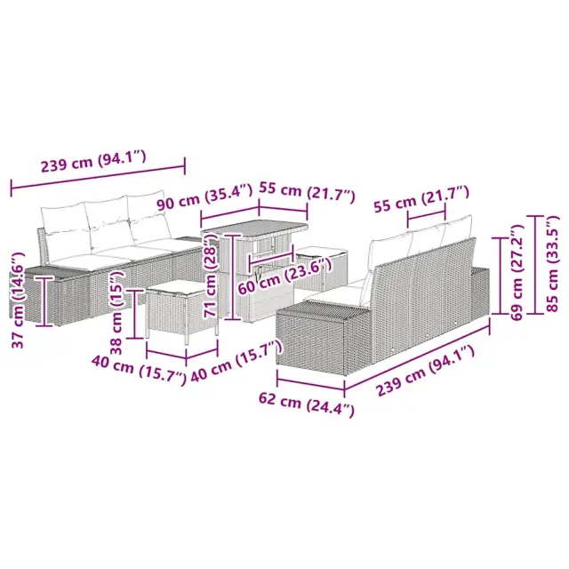 • Priporočena uporaba: Idealno za sproščanje na prostem v pomladnih in poletnih dneh, ta set spremeni vaš vrt, teraso ali patio v vabljivo središče. Ne glede na to, ali organizirate zabave ali se družite s svojo družino, njegova prilagodljivost nudi udobje in stil.
