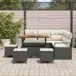 vidaXL Vrtna sedežna garnitura z blazino 9 pcs Črna poli ratan