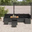 vidaXL Vrtna sedežna garnitura z blazino 9 pcs Črna poli ratan
