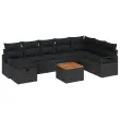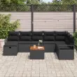 vidaXL Vrtna sedežna garnitura z blazino 9 pcs Črna poli ratan