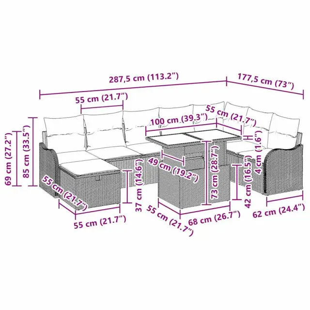 Ta modularni vrtni kavč združuje eleganco in prilagodljivost, kar ga naredi osrednji del vsake terase ali vrta. Oblikovan je v sodobnem slogu, ki združuje čiste linije s funkcionalnostjo, tako da nudi vabljiv zunanji salon. Ne glede na to, ali preživljate čas sami ali gostite prijatelje, modularna zasnova se enostavno prilagodi vsaki priložnosti. Njegov moder prevleček vabi k počitku in užitku na prostem, medtem ko njegova funkcionalnost zadostuje za spontane srečanja in načrtovane zabave, vse v stilski podobi.