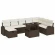 vidaXL Vrtna sedežna garnitura z blazino 9 pcs Rjava Poly ratan