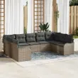 vidaXL Vrtna sedežna garnitura z blazino 9 pcs Siva Poly ratan