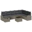 vidaXL Vrtna sedežna garnitura z blazino 9 pcs Siva Poly ratan