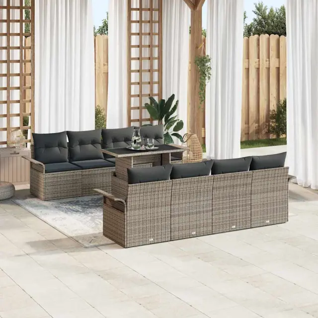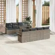 vidaXL Vrtna sedežna garnitura z blazino 9 pcs Siva Poly ratan
