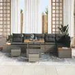 vidaXL Vrtna sedežna garnitura z blazino 9 pcs Siva Poly ratan
