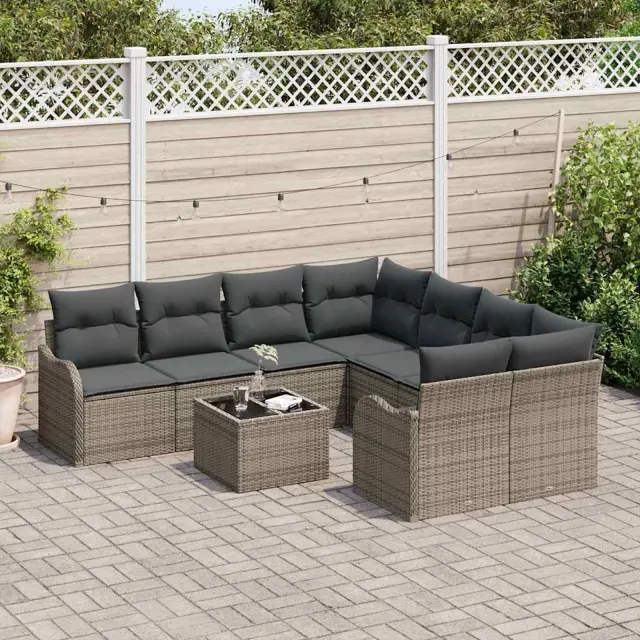 vidaXL Vrtna sedežna garnitura z blazino 9 pcs Siva poli ratan