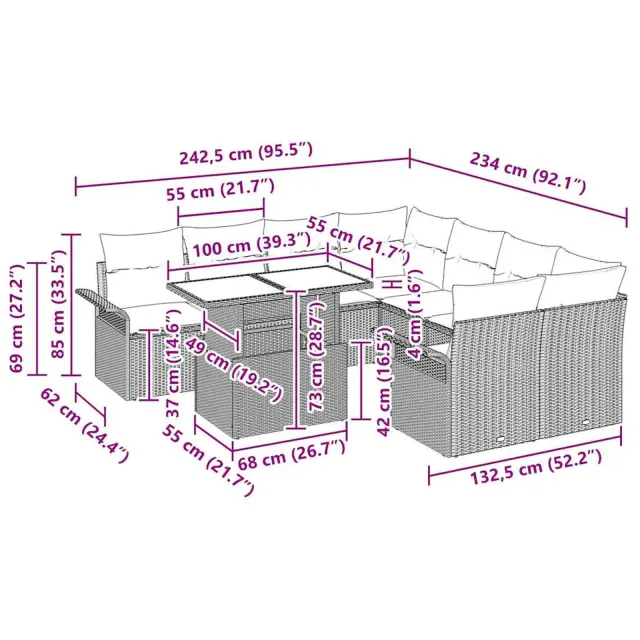 Ta moduliran vrtnik kavč je popolna kombinacija stila, udobja in funkcionalnosti za vse, ki radi preživljajo čas zunaj. S svojim modernim dizajnom in preprostimi linijami je ta set zasnovan, da obogati vsak vrt ali teraso. Modularnost omogoča hitro prilagajanje različnim potrebam, zato je idealen za družinske prireditve, sprostitev ali večerje na prostem s svojimi najdražjimi.