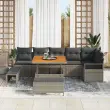 vidaXL Vrtna sedežna garnitura z blazino 9 pcs Siva Poly ratan