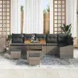 vidaXL Vrtna sedežna garnitura z blazino 9 pcs Siva poli ratan