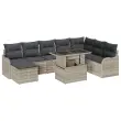 vidaXL Vrtna sedežna garnitura z blazino 9 pcs Svetlo siva Poly ratan