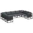 vidaXL Vrtna sedežna garnitura z blazino Črna Aluminij