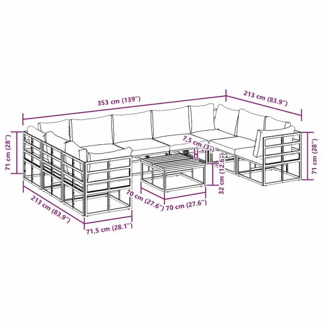 vidaXL Vrtna sedežna garnitura z blazino Črna Aluminij