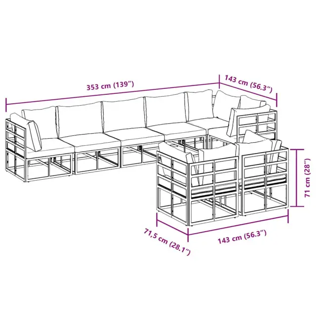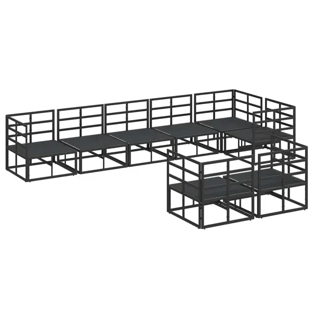 vidaXL Vrtna sedežna garnitura z blazino Črna Aluminij