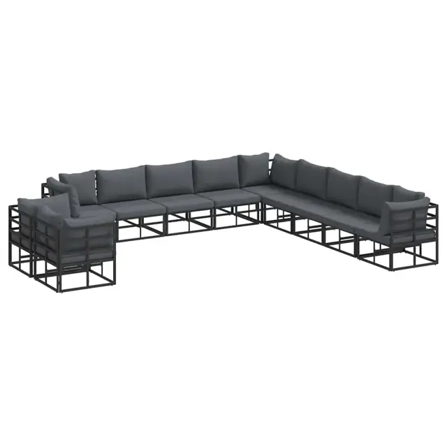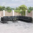 vidaXL Vrtna sedežna garnitura z blazino Črna Aluminij