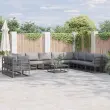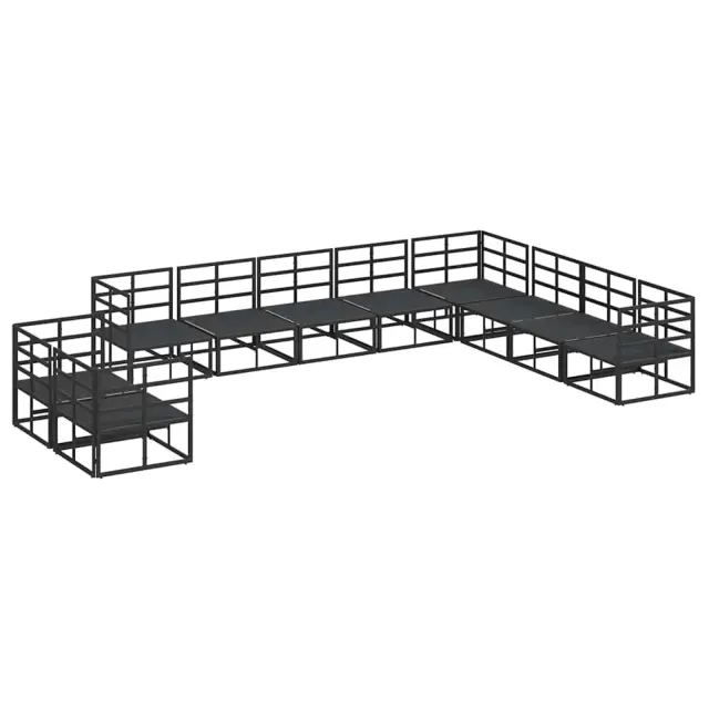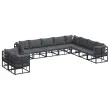 vidaXL Vrtna sedežna garnitura z blazino Črna Aluminij