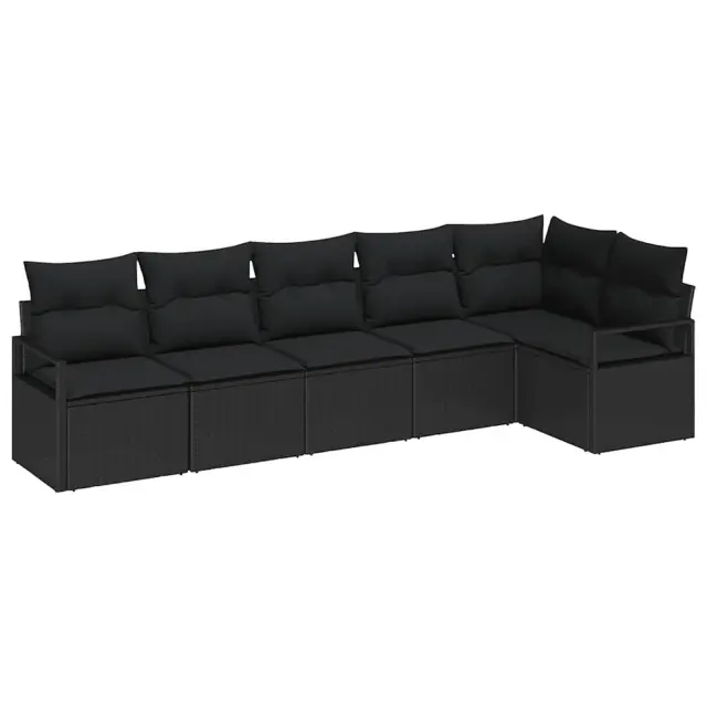 vidaXL Vrtna sedežna garnitura z blazino s shranjevanjem 6 pcs Črna