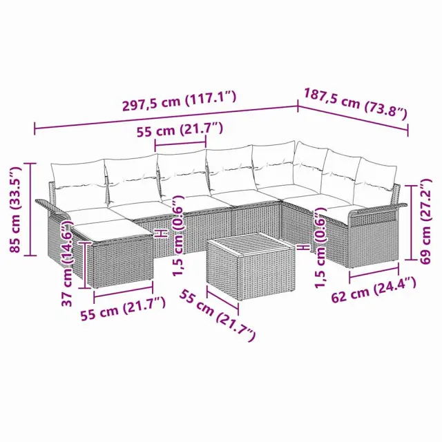 Ta modularni vrtni kavč je popolnoma kos za vsak zunanji prostor, ki odraža sodoben slog, ki ceni enostavnost in funkcionalnost. Njegove elegantne linije in minimalistična zasnova izgledajo super in se enostavno prilagajajo različnim vrtnim stilom. Ne glede na to, ali organiziraš vrtnarsko zabavo ali se sproščaš ob knjigi, ta set nudi fleksibilen prostor za različne potrebe po sedenju.