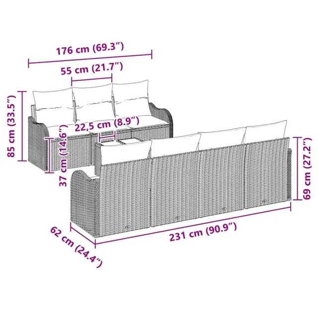 Ta modularni set vrtnega kavča je res kul zunanji kos pohištva, ki lepo združuje funkcionalnost in stil, kar dvigne vsak zunanji prostor. Čiste linije in minimalistična zasnova sta odlična za vrtove in terase, lahka konstrukcija pa omogoča enostavno premikanje. Set perfektn za razne priložnosti, od vrtnih zabav do mirnih trenutkov pod odprtim nebom.