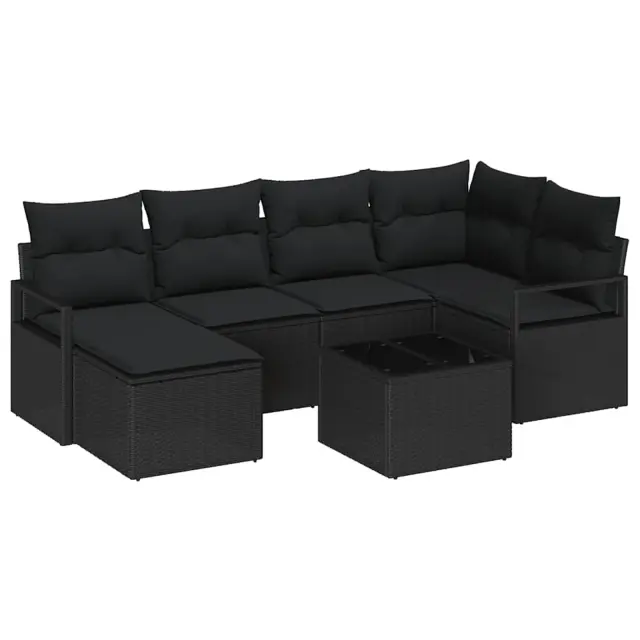 vidaXL Vrtna sedežna garnitura z blazino s shranjevanjem 7 pcs Črna