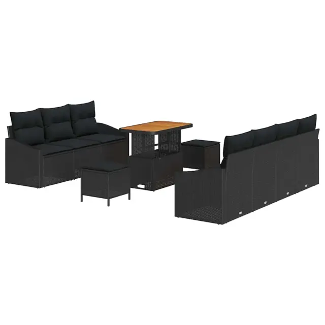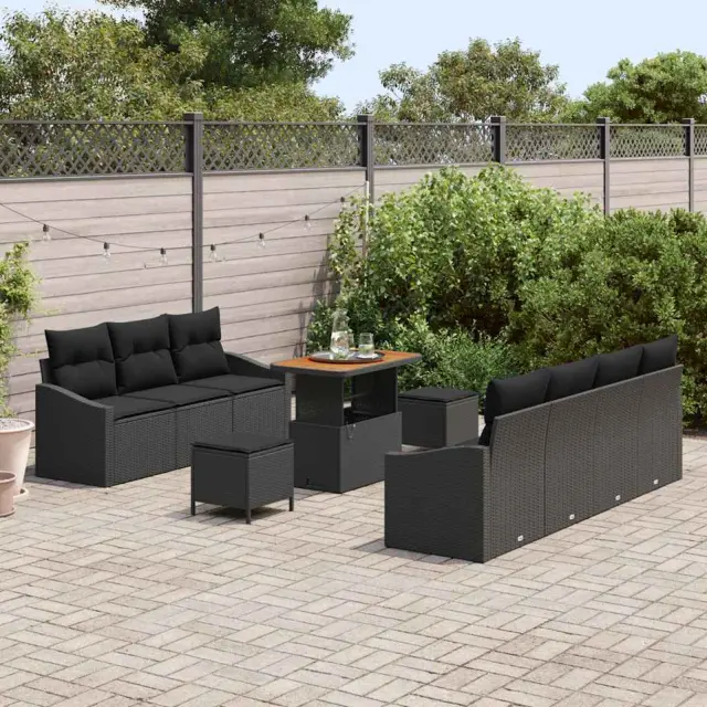 vidaXL Vrtna sedežna garnitura z blazino s shranjevanjem 10 pcs Črna