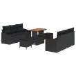 vidaXL Vrtna sedežna garnitura z blazino s shranjevanjem 9 pcs Črna
