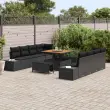 vidaXL Vrtna sedežna garnitura z blazino s shranjevanjem 11 pcs Črna