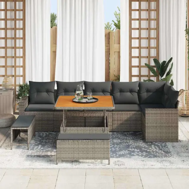 • Materiali iz poliratana Ta vrtni set je narejen iz močnega poliratana, ki je odporen na vremenske razmere, kar zagotavlja moč in estetiko. Material je trpežen in ne žrtvuje stila, kar ponuja mir pri dolgotrajni uporabi.
