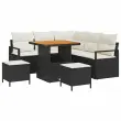 vidaXL Vrtna sedežna garnitura z blazino z blazino 8 pcs Črna in krem