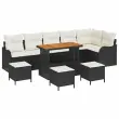 vidaXL Vrtna sedežna garnitura z blazino z blazino 10 pcs Črna in krem