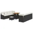 vidaXL Vrtna sedežna garnitura z blazino z blazino 11 pcs Črna in krem