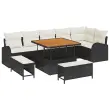 vidaXL Vrtna sedežna garnitura z blazino z blazino 9 pcs Črna in krem