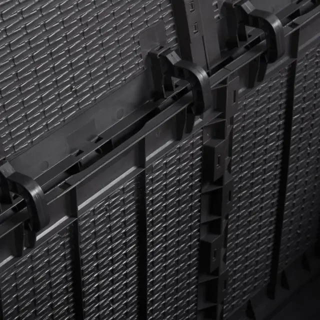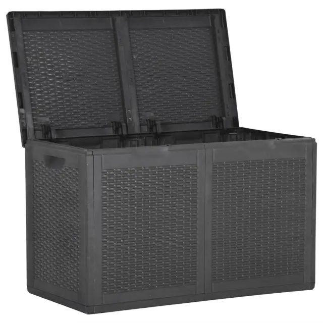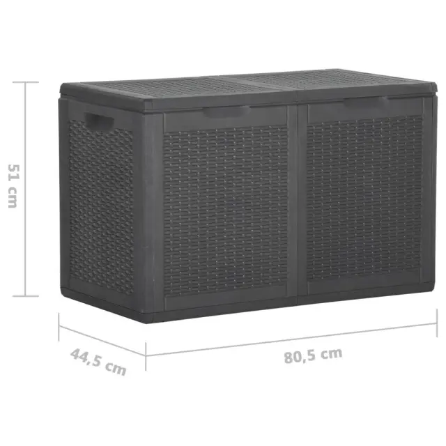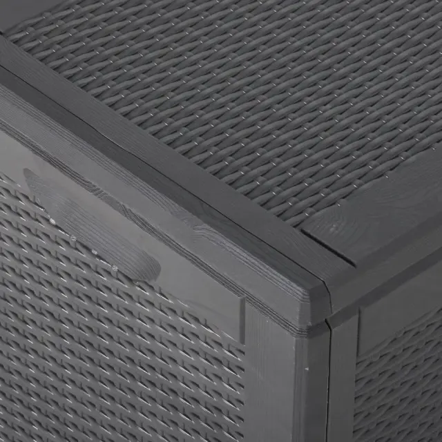 Škatla je izdelana iz 100 % materiala PP, zato je odporna na vremenske vplive, UV-odporna, lahka in preprosta za premikanje. Vrtna škatla ima preprost in brezčasen dizajn ter se popolnoma poda k dekorju v vaših notranjih in zunanjih prostorih. Vrtna škatla ponuja dovolj prostora za shranjevanje odej, blazin in drugih gospodinjskih ali vrtnih stvari, da bodo na dosegu roke.