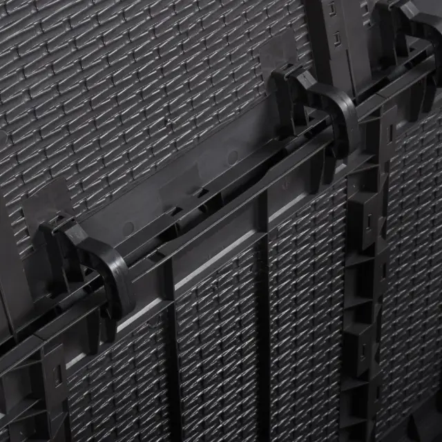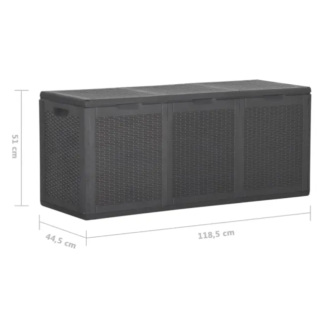 Škatla je izdelana iz 100 % materiala PP, zato je odporna na vremenske vplive, UV-odporna, lahka in preprosta za premikanje. Vrtna škatla ima preprost in brezčasen dizajn ter se popolnoma poda k dekorju v vaših notranjih in zunanjih prostorih. Vrtna škatla ponuja dovolj prostora za shranjevanje odej, blazin in drugih gospodinjskih ali vrtnih stvari, da bodo na dosegu roke.