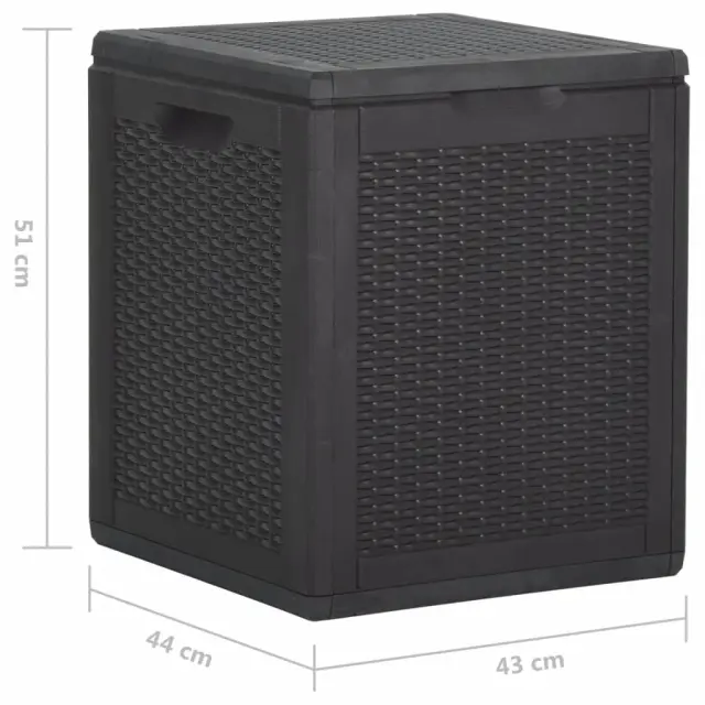 Škatla je izdelana iz 100 % materiala PP, zato je odporna na vremenske vplive, UV-odporna, lahka in preprosta za premikanje. Vrtna škatla ima preprost in brezčasen dizajn ter se popolnoma poda k dekorju v vaših notranjih in zunanjih prostorih. Vrtna škatla ponuja dovolj prostora za shranjevanje odej, blazin in drugih gospodinjskih ali vrtnih stvari, da bodo na dosegu roke.