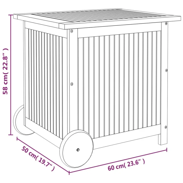 vidaXL Vrtna škatla s kolesi 60x50x58 cm trden akacijev les