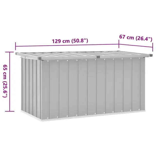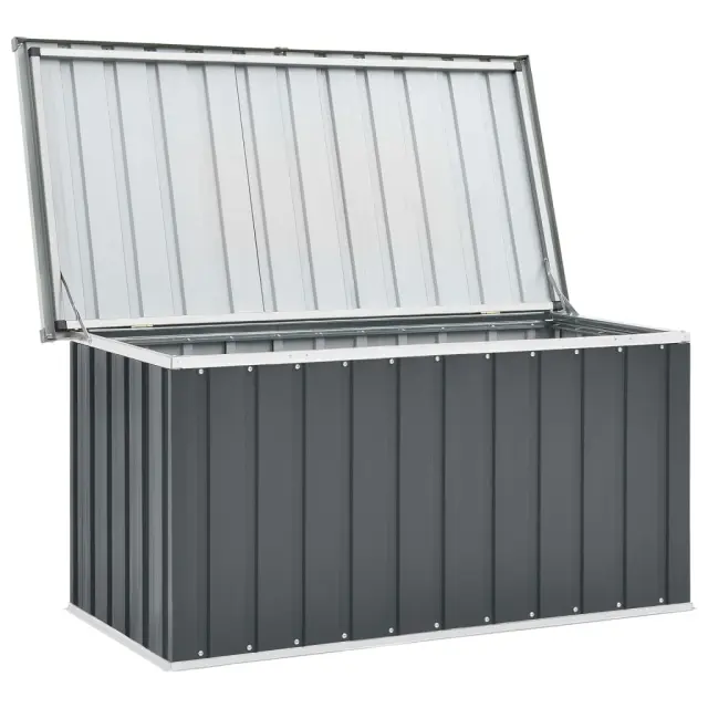 Prostoren vrtni zaboj je odličen za shranjevanje blazin, vzglavnikov, odej in drugih predmetov. Zaradi svoje trdne konstrukcije se lahko uporablja tudi kot škatla za orodje. Skrinja za shranjevanje je izdelana iz trpežnega pocinkanega jekla in je primerna za notranjo in zunanjo uporabo. Vrtna škatla za shranjevanje ima prefinjeno, a brezčasno obliko, ki se ujema z vsakim dekorjem.