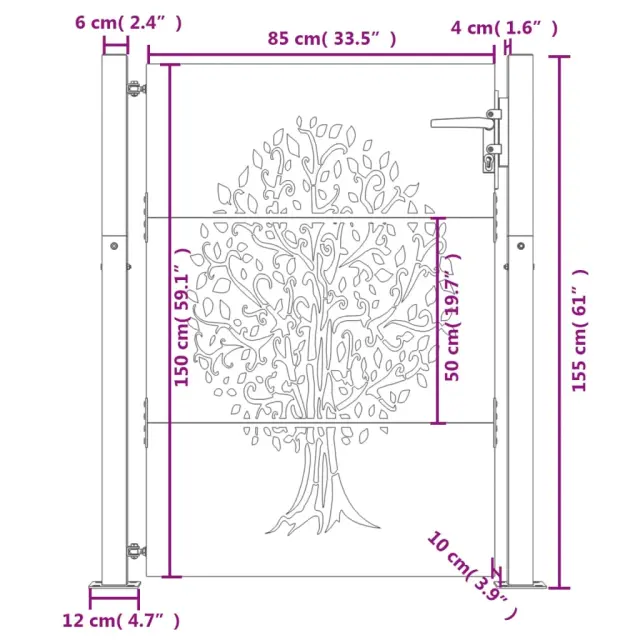 vidaXL Vrtna vrata 105x155 cm corten jeklo dizajn drevesa