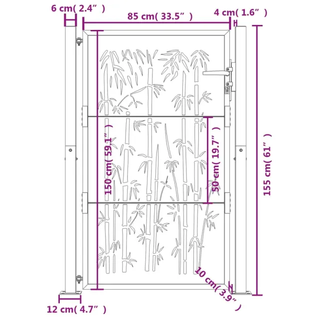 vidaXL Vrtna vrata 105x155 cm Corten jeklo dizajn bambusa