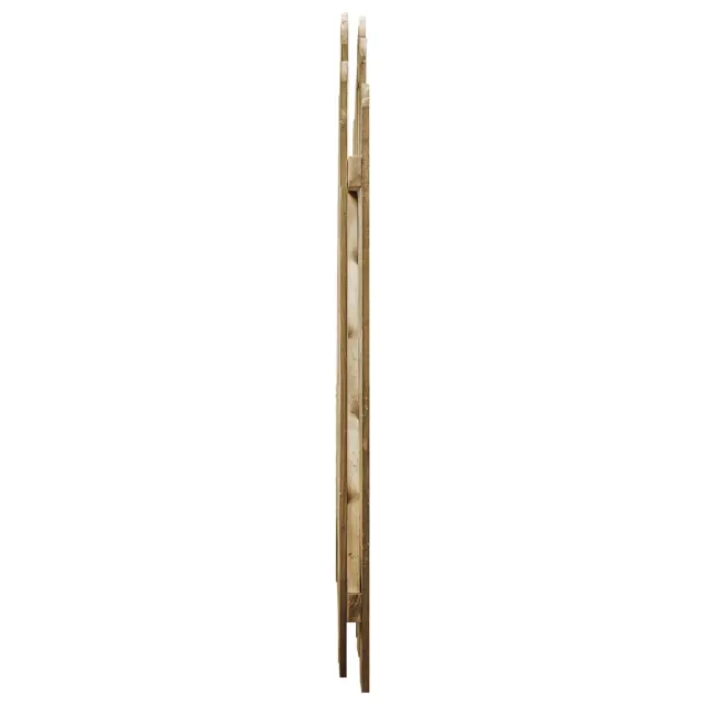 Trdna lesena vrtna vrata v obokanem dizajnu izžarevajo rustikalni šarm in bodo idealna vstopna točka za ograjo okoli vašega vrta ali terase. Ta trpežna vrtna vrata so izdelana iz borovega lesa. Impregnirana borovina je trpežna ter odporna na vremenske vplive in trohnenje. Vrata za ograjo, sestavljena iz navpičnih letev ter vodoravnih in diagonalnih prečk, so čvrsta, stabilna in trpežna. Naša vhodna vrata so preprosta za montažo s priloženimi žeblji. Dobro je vedeti: Tečaji in kljuka niso vključeni. Upoštevajte, da je les naraven proizvod, na katerem so lahko vidne nepopolnosti.Material: Borovina, zelena impregniranaVelikost: 100 x 100 cm (Š x V)Zaobljena oblikaOdporno na vremenske vplive in trohnenje 45327